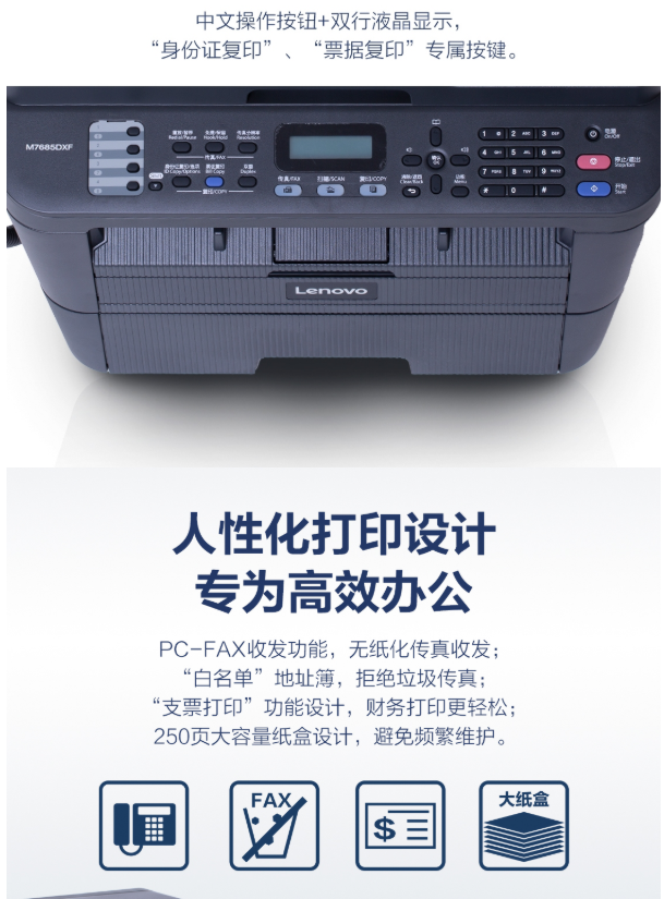 商品名稱:聯(lián)想Lenovo打印機M7685DXF聯(lián)想 M7685DXF黑白激光多功能一體機